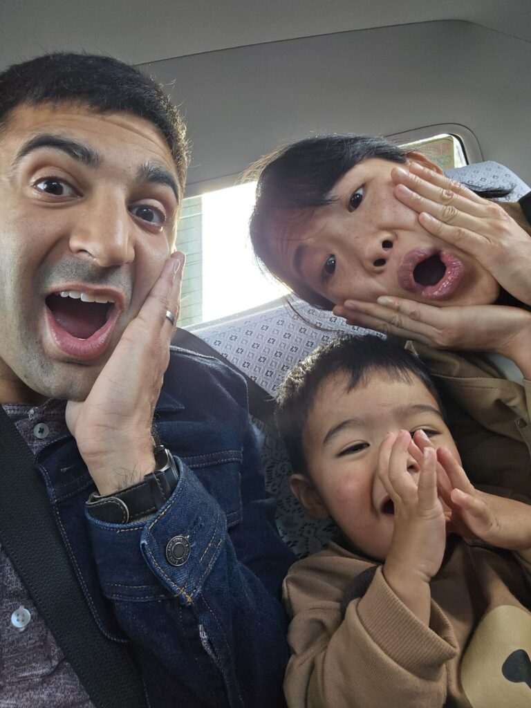 Forrest was bored so our poor taxi driver had to deal with us being silly in the backseat.
