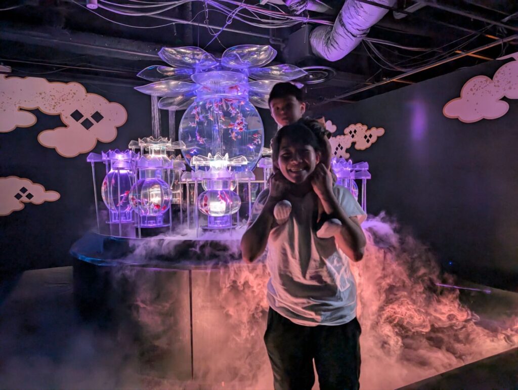 Forrest loved the Art Aquarium Museum that hosts 30,000 living goldfish on display in really cool and unique ways. Forrest loved seeing the fish and saying “fshhh.”