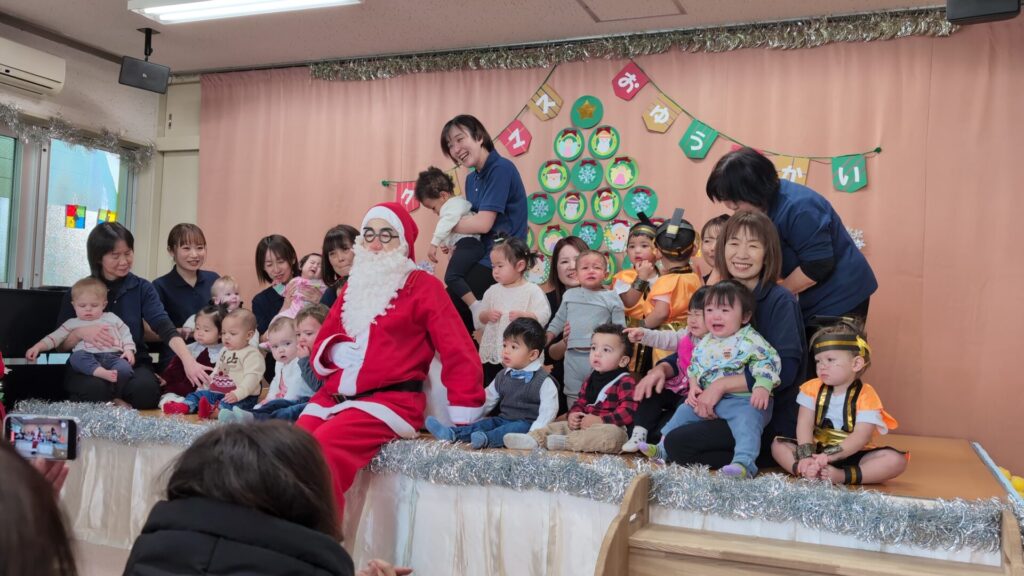After the performances, Santa came to visit! He’s holding Forrest’s hand. Getting all these kids together for the picture was pure chaos.