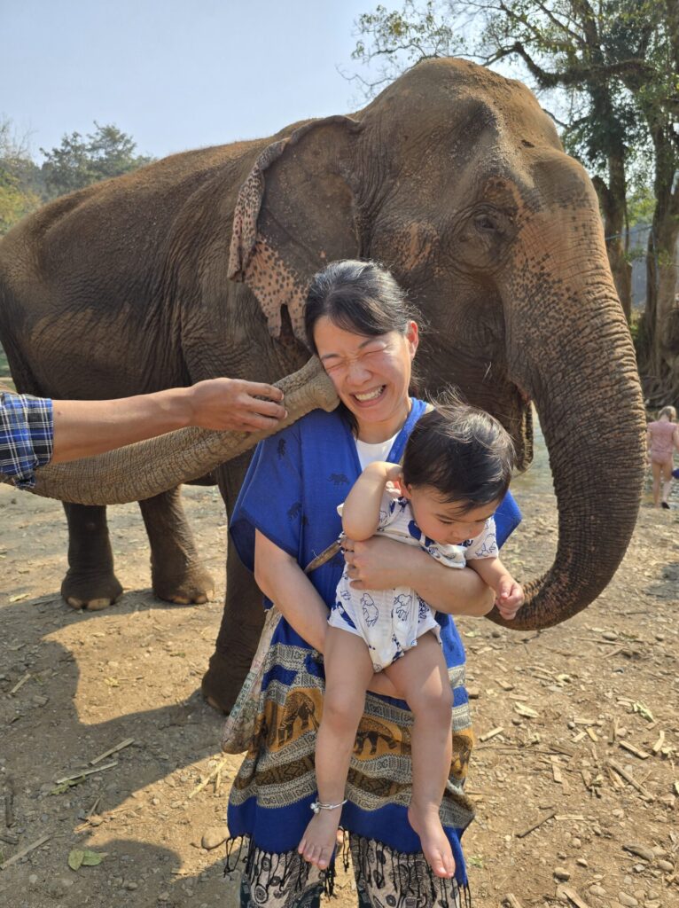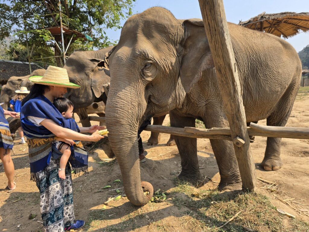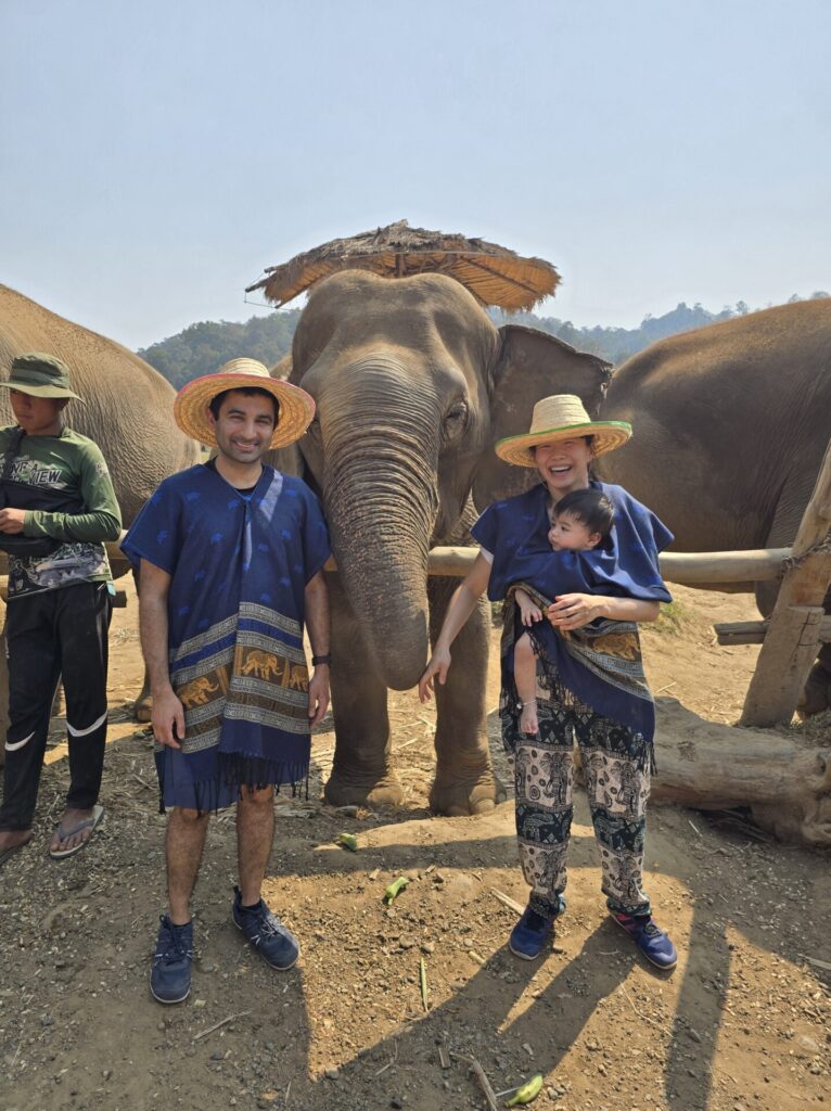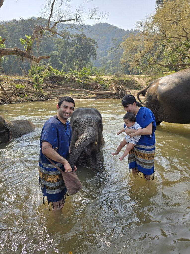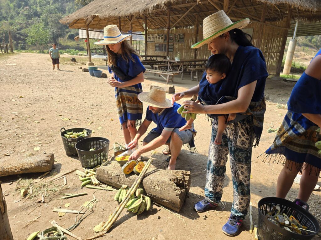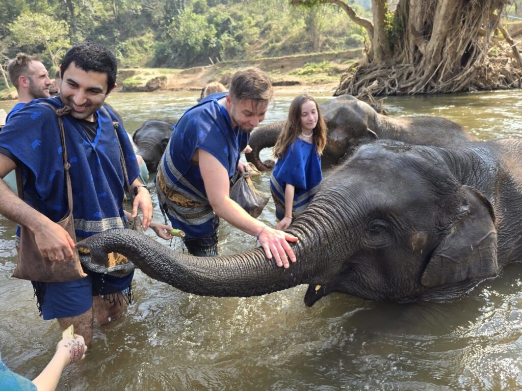 Afterwards we went to a long neck village. Refugees from Myanmar populated the small village and the women had very long necks for beauty. Every 3 years they add a ring. Next to the village was the elephant sanctuary. Elephants there are rescued and saved from the hard and cruel labor of circuses. They were so well taken care of. We fed them sugarcane, bananas, and pumpkin squash. What was amazing was how much the elephants took to Forrest. The older female elephants especially loved giving Forrest kisses and playing with him. We also got to go in the river with the elephants and play with them there.