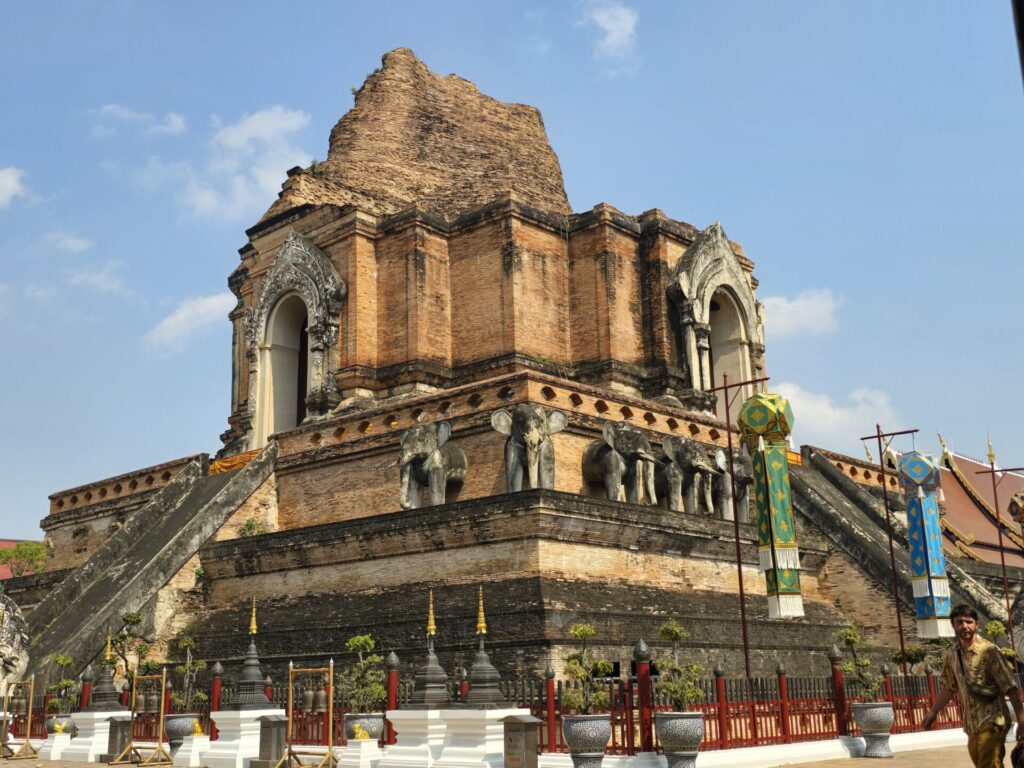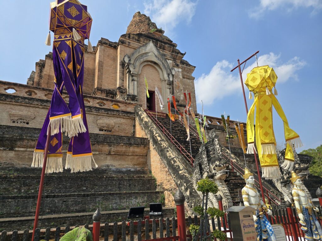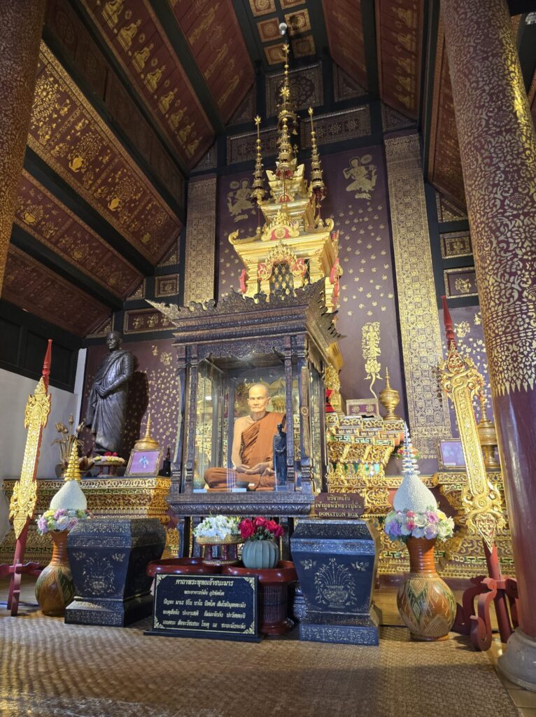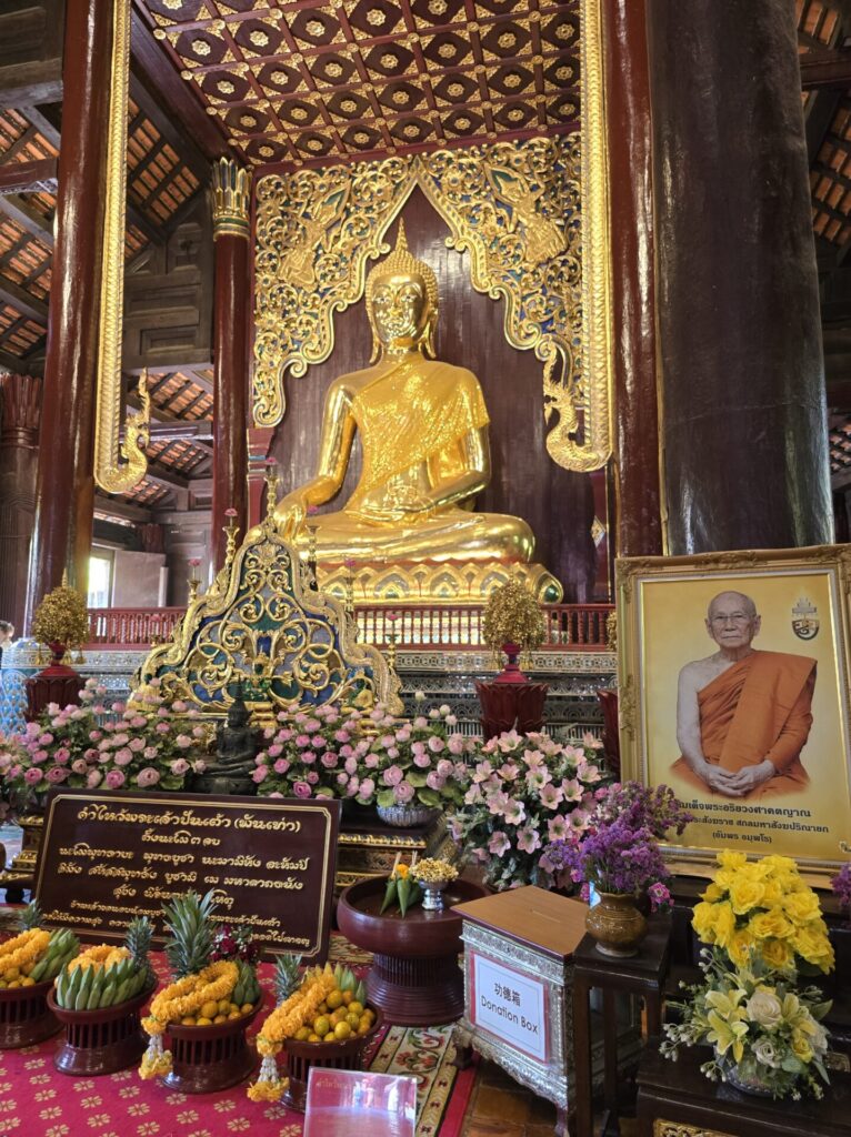 Today we temple hopped around Chiang Mai. First we had a nice big breakfast of mainly the seasonal fruits (passion fruits, watermelon, cantaloupe) but we have been perpetually full since the food tour on 2/1. Then we got coffee and of course thai tea at a local café. The thai tea was perfect, and the coffee was sweetened with coconut milk and coconut pulp fresh from a coconut!